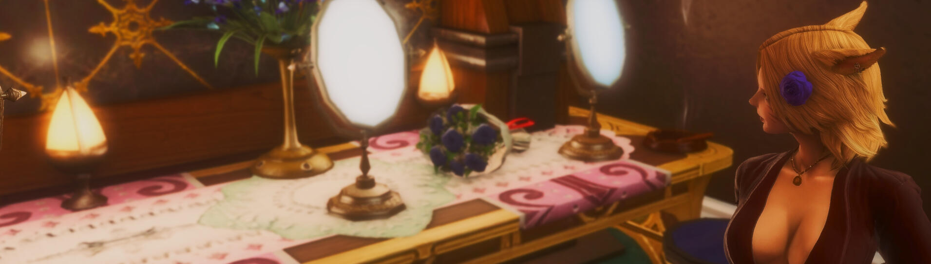 ❧ Courtesans of the Blue Rose wear a blue rose in their hair, if you see one of us out in the world, we're working! feel free to approach and send a /tell!